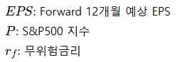 - ERPERPERP: 주식 위험 프리미엄 (주식이 국채보다 위험하기 때문에 요구되는 추가 보상)